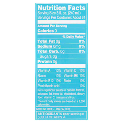 Sparkling Ice® Black Raspberry | Sparkling Ice Classic Nutrition Facts 5 Calories Per Serving Contains 1% Juice Caffeine Free Antioxidants (per serving): 135mcg RAE Vitamin A Not a significant source of saturated fat, trans fat, cholesterol, dietary fiber, total sugars, added sugars, calcium, iron, and potassium. *% Daily Values are based on a 2,000 calorie diet. % of Daily Value Vitamin A 15%