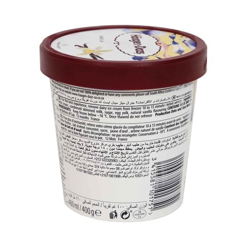Haagen-Dazs Vanilla Ice Cream - Shop Ice Cream & Treats at H-E-B Haagen-Dazs Vanilla Ice Cream 14 oz $4.10 ($0.30/oz) Icon details Product description Elegance in a bowl. Pure cream and Madagascar vanilla create a sweet scent of exotic spice for a distinctively luxurious taste. Preparation instructions Keep frozen until served. Ingredients Cream, Skim Milk, Cane Sugar, Egg Yolks, Vanilla Extract. Safety warning