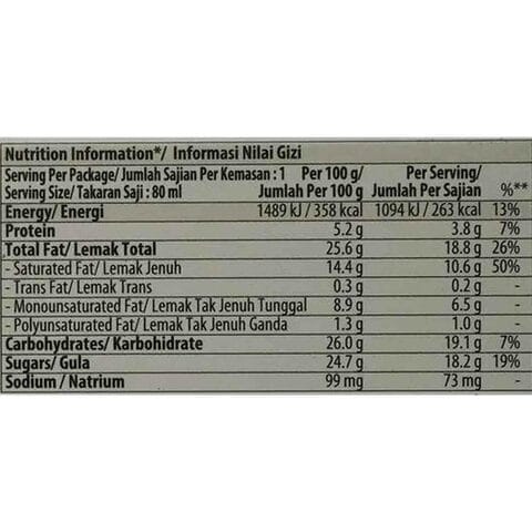 Haagen daz nutrition label