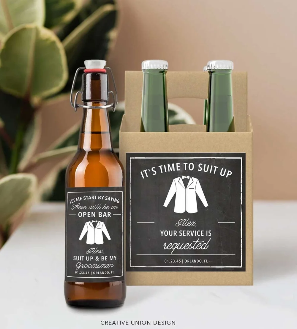 Groomsmen Beer Bottle Labels - Etsy Webgroomsman proposal - will you be my groomsman 6 pack carrier - beer labels for groomsman - suit up beer labels groomsmen MBB-006 zoeysattic (59,444) $11.05 …