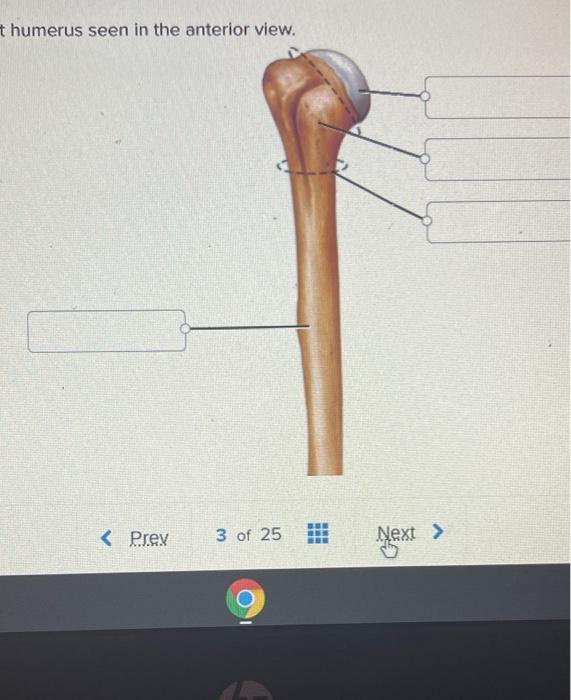 Solved Correctly label the anatomical features of the | Chegg.com Final answer. Step 1/3. The long bone known as the humerus can be found in the upper arm, between the elbow joint and the shoulder joint. The glenohumeral joint connects the proximal humerus to the shoulder via the glenoid fossa of the scapula. At the elbow, the distal humerus articulates with the forearm's radius and ulna. Humerus: Anatomy, Function, and Treatment The humerus has two large knobs at the top of the bone, called the greater and lesser tubercles, which join the scapula in order to provide movement along with stability. The rhythm between the scapula and the humerus is a very important one for adequate shoulder function. Another important landmark is the anatomical neck, a slightly more ... Humerus Bone Quiz Anatomy 18. The humerus bone is the only bone that makes up the arm, anatomically speaking. The answer is A, true. In anatomy, the arm is the part of the upper extremity from the elbow to the shoulder. The humerus is the only bone found in the anatomical arm. The radius and ulna bones are found in the forearm. 19. Label The Parts of the Humerus Quiz This is an online quiz called Label The Parts of the Humerus. There is a printable worksheet available for download here so you can take the quiz with pen and paper. This quiz is filed in the following categories. biology. Bones.